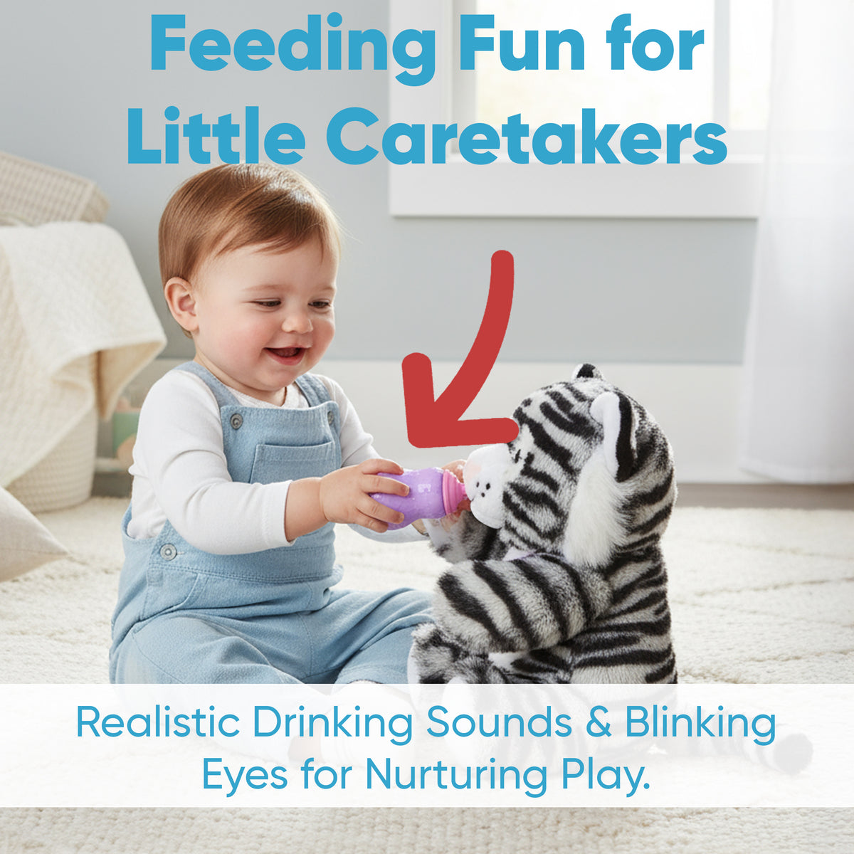 • 🍼 Feeding simulation — help your tiger get ready for nap time with a bottle and burp.